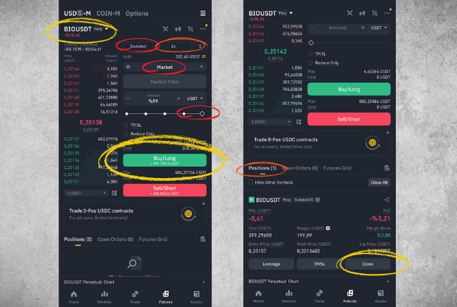 In the Binance Futures interface, find BIO/USDT or the relevant trading pair.