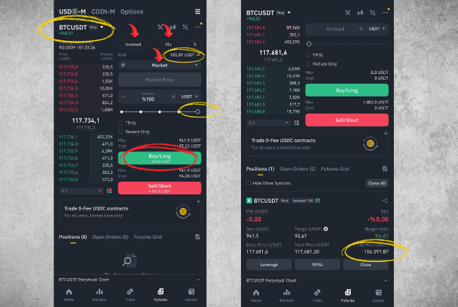 However, if we open a position in Cross mode instead of Isolated, we can add funds to the account and lower our liquidation price. But if the price drops further, our losses will also increase. Therefore, if you are a beginner, it is more advantageous to trade in Isolated mode.