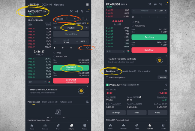 Our liquidation level is displayed at the bottom right as 2189 $. If PAXG drops to 2189 $, our 100 $ will be lost.